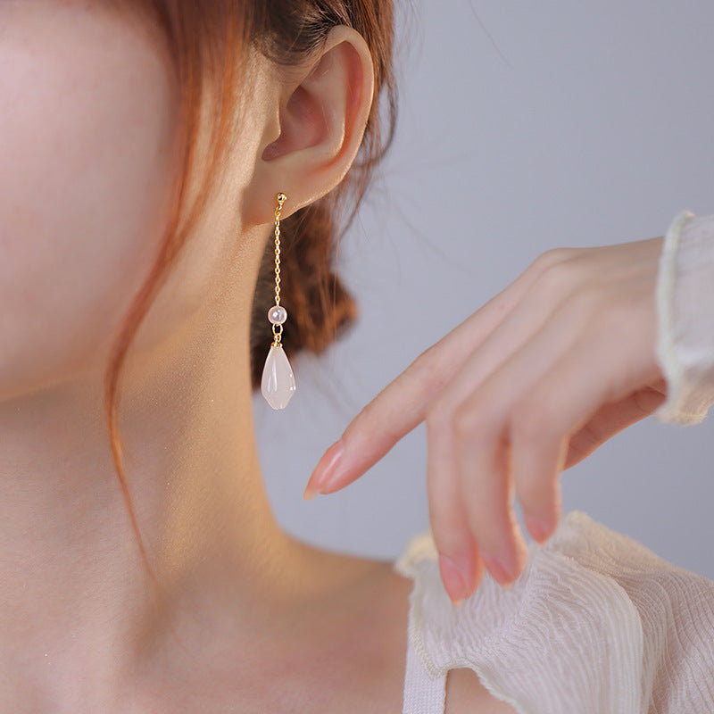 Flowers Hetian Jade Earrings Sterling Silver Long Earrings High Sense Ear Rings